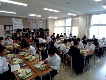 11月1日(金) 給食委員会 みんなでご飯(1) 公開日 2024/11/01 更新日 2024/11/01 2学年 今日の給食では、給食委員会が企画した「みんなでご飯」を行い、生活班ごとに給食をとりました。 〈写真上:2年1組、写真中:2年2組、写真下:2年3組〉