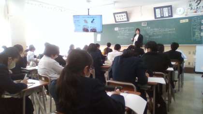 写真 上:1年4組 技術・家庭科家庭分野 下:1年6組 英語