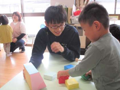 11月5日(火) 3年3組奥田保育園訪問 公開日 2024/11/06 更新日 2024/11/06 3学年 今日は3年3組が奥田保育園の乳幼児たちと触れ合いました。 手作りのおもちゃも凝ったものが多く、保育園の先生たちも驚いておられました。