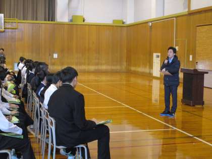 6限は、文部科学省から研修で来られている方から、「職業観と今後の進路選択」についてご講話いただきました。