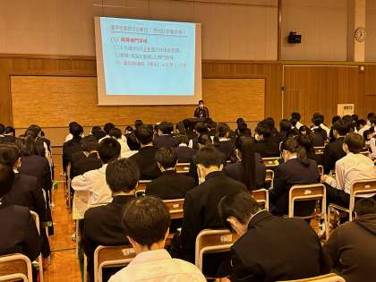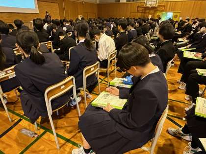 4限に学年集会を開き、「今度の進路選択について」学年主任から話しをしました。中学卒業後、自分にどんな選択肢があるのかを学び、1年後に向けての準備をしていく心構えをしました。