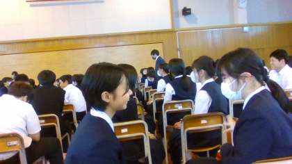 1学年は「進路学習」として文部科学省から来られた方の話を聴きました。