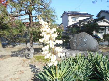 秋晴れの中、校訓石碑の前の「キミガヨラン」がきれいに咲いています。