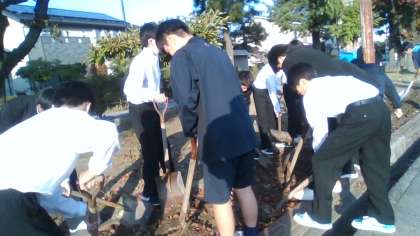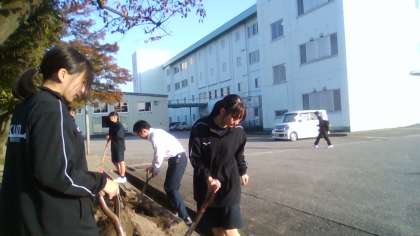 1、2年生の有志と、教職員で花壇整備が行いました。