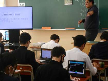 自己紹介をしたり、端末を使っての授業に取り組んだりしました。