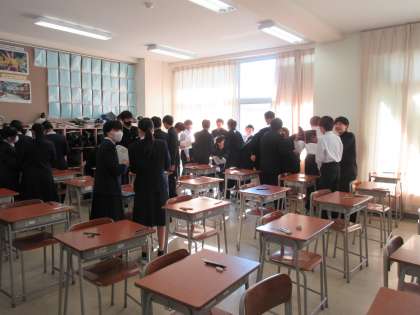 11月25日(月) 2学年 期末考査1日目 その1 公開日 2024/11/25 更新日 2024/11/25 2学年 本日より期末考査が始まりました。 日頃の学習の成果を発揮して頑張っています。 休み時間には、用語の確認をしたり、お互いに問題を出し合ったりする姿も見られました。
