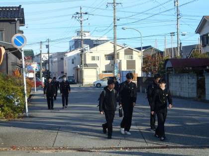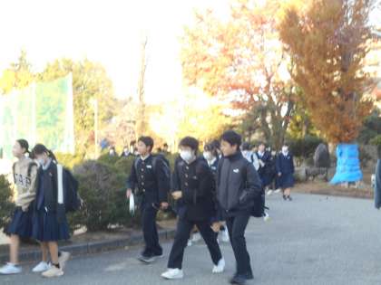 今日は2学期末評価の2日目。ノートを見ながらの登校をする生徒もみられます。