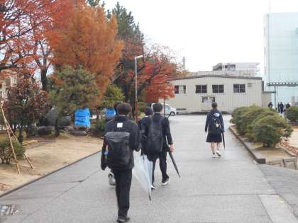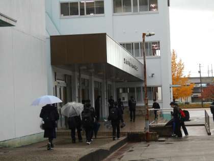 11月28日(木) 登校風景 公開日 2024/11/28 更新日 2024/11/28 学校だより 冷たい雨の朝となりました。昨日よりも気温がかなり下がりそうです。 市内でインフルエンザが流行し始めたというニュースがありました。 期末考査は終了しましたが、気を抜くことなく体調管理に努めましょう。 本日から、部活動を再開します。