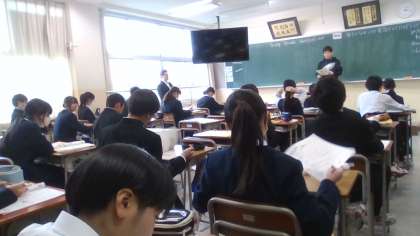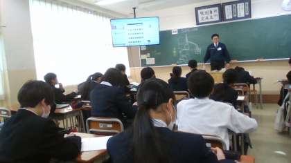 12月3日(火) 5限 1学年の授業 その2 公開日 2024/12/04 更新日 2024/12/04 1学年 5限目の授業の様子です。 写真 上:1年3組 理科 混合物の分離実験の説明 中:1年2組 国語 12月は「師走」 下:1年1組 英語 「海斗は・・」