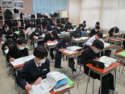 12月3日(火) 2学年進路学習 その1 公開日 2024/12/04 更新日 2024/12/04 2学年 6限は各教室で、進路しおり等を配付し、富山県の高校にはどのような学科があるのかについて調べました。 (写真 1組:上、2組:中、3組:下)