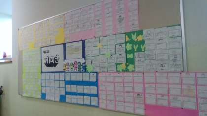 12月5日(木) 昼休み 1学年 2学期の振り返り 公開日 2024/12/05 更新日 2024/12/05 1学年 1学年の学年目標「前向き」 学年目標に対して自分が2学期までどのように向き合ったのか生徒一人一人が振り返った 掲示物が廊下に掲示されました。 各学級ごとのイメージカラーを表した色画用紙に掲示された振り返りを生徒は興味しんしんとした様子で見ています。