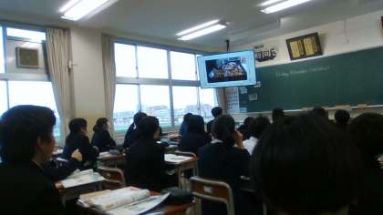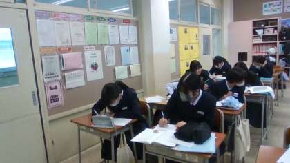 写真 上:1年3組 数学 図形の問題に取り組んでいます。