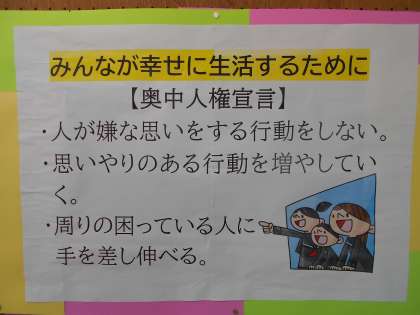 奥中人権宣言を生徒玄関や教室に掲示しています。