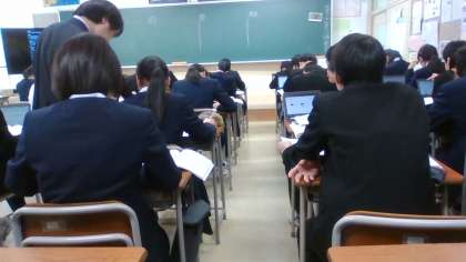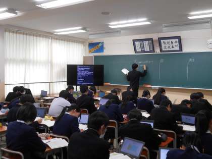 12月10日(火) 第3回GIGAスクール公開研修会 その3 公開日 2024/12/10 更新日 2024/12/10 学校だより 3年生は数学で研修が行われました。 3年1組 数学 「円」 「円周角を利用して、円の中の三角形の相似を証明しようと取り組んでいます。」