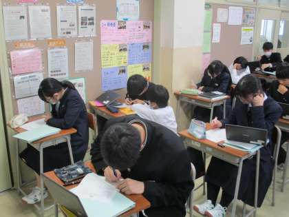 12月18日(水) 3限授業風景 公開日 2024/12/18 更新日 2024/12/18 2学年 2年2組は数学の授業です。 平行四辺形の性質を利用した問題演習に取り組んでいます。 2学期の授業もあとわずかです。最後まで集中し、力をつけていきましょう。