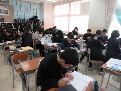 12月19日(木) 2学年 授業の様子 その1 公開日 2024/12/20 更新日 2024/12/20 2学年 ALTの先生の動画を使った解説を聴いたり、問題演習をしたり等、学習に取り組みました。 1組:英語(アメリカのクリスマスについて) 2組:社会(ぷちスタ等)