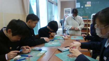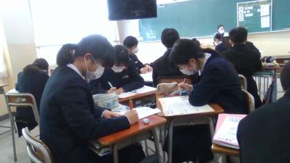写真 上:1年2組 英語 中:1年1組 国語 下:1年6組 美術