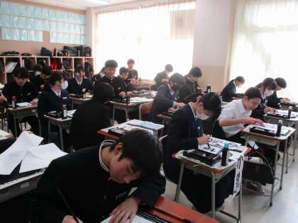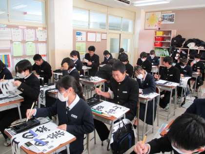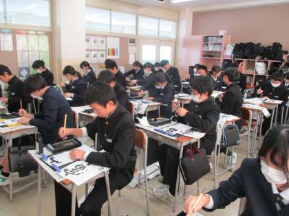 今年の2年生のお題は、「富山の薬」です。行書で書きます。