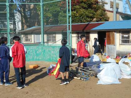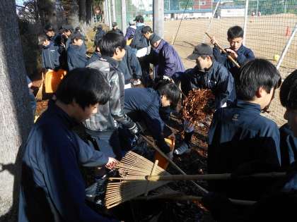 下:野球部とサッカー部がグラウンドの落ち葉清掃をしました。