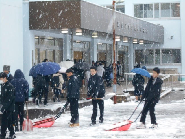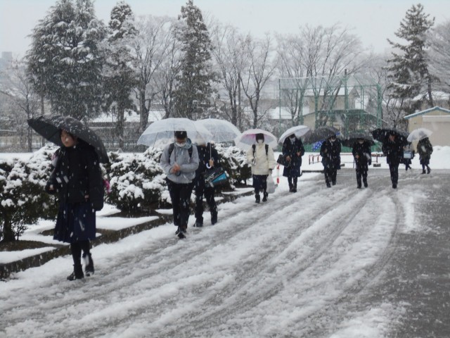 1月8日(水) 登校風景 公開日 2025/01/08 更新日 2025/01/08 学校だより 今日から3学期が始まりました。雪の朝となっています。何人もの生徒が除雪を手伝ってくれました。登下校には十分注意をしましょう。充実した3学期にしていきたいものです。