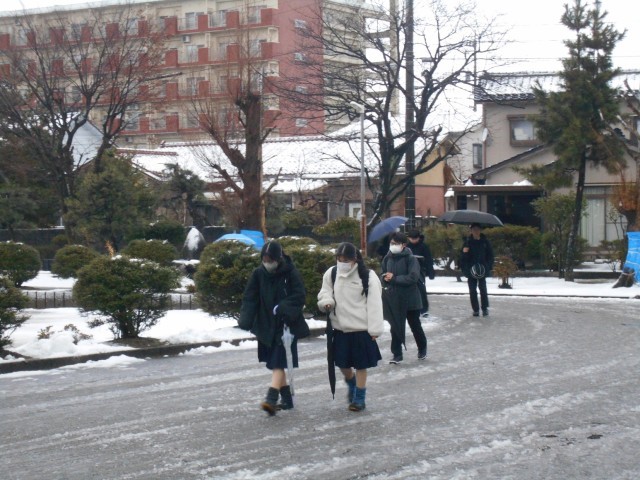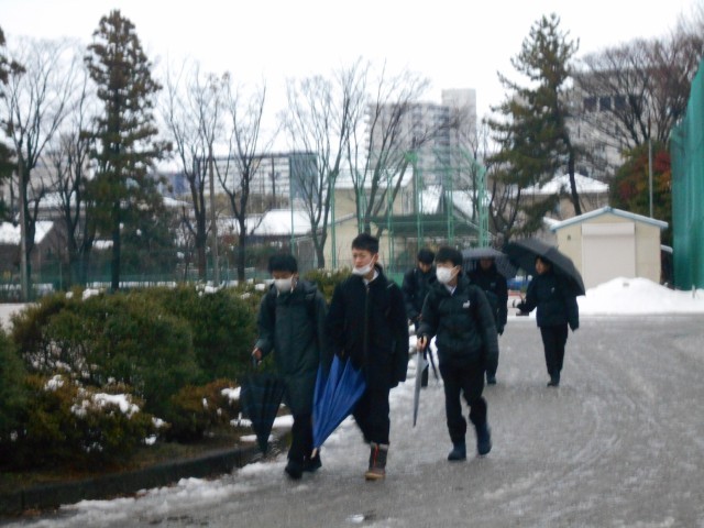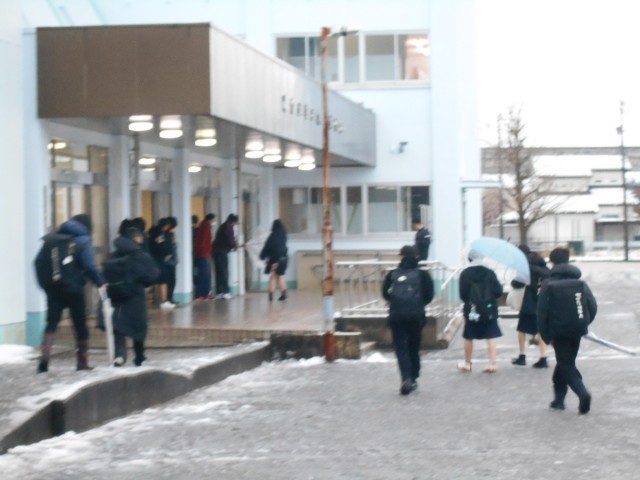1月9日(木) 登校風景 公開日 2025/01/09 更新日 2025/01/09 学校だより 予想されたよりも少ない積雪の朝ですが、今後さらなる降雪が予報されています。明日の登校は充分に気をつけてください。本日より3学期の給食が始まります。1年生は冬休み明け確認テストです。私立高校の推薦入試が本日から行われます。