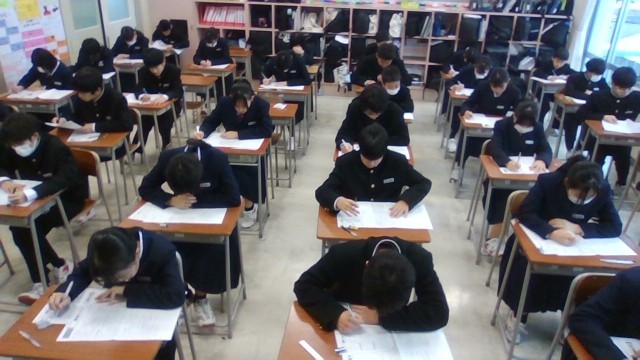 1月9日(木) 1学年 冬休み明けテスト その1 公開日 2025/01/10 更新日 2025/01/10 1学年 1学年は冬休み明けテストを実施しました。本日最初の受検教科は「国語」です。写真:1年6組