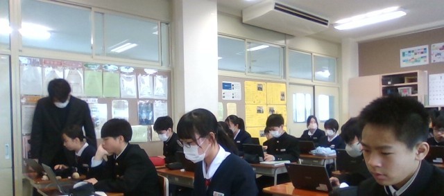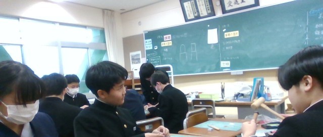 1月14日(火) 1学年 授業の様子 公開日 2025/01/14 更新日 2025/01/14 1学年 4限の1年生の授業の様子です。1枚目 1年2組 数学 少人数教室2枚目 1年6組 英語3枚目 1年5組 保健体育 武道館でマット運動4枚目 1年4組 技術・家庭 さばの味噌煮は美味しいぞ!5枚目 1年3組 数学 スライドを作成中6枚目 1年1組 美術 粘土を削っています! +3
