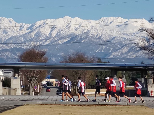いつもと違う環境で十分に走る姿を立山連峰が見守ってくれています。