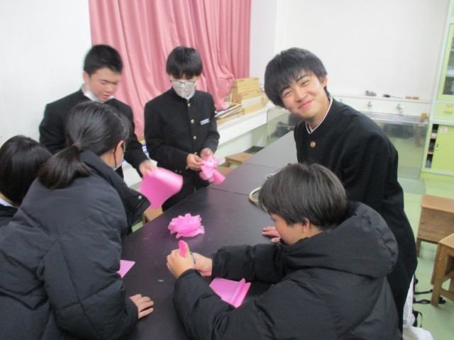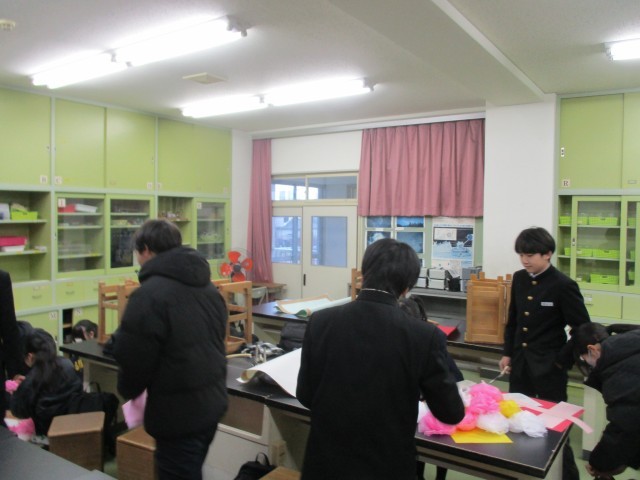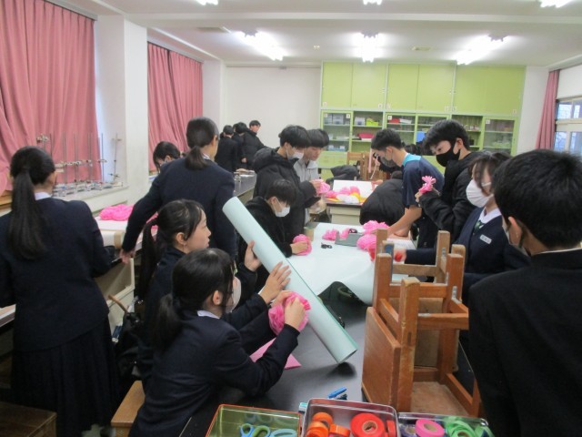 放課後、委員会の生徒が中心となって、3年生の教室の飾り付けの作成をしています。