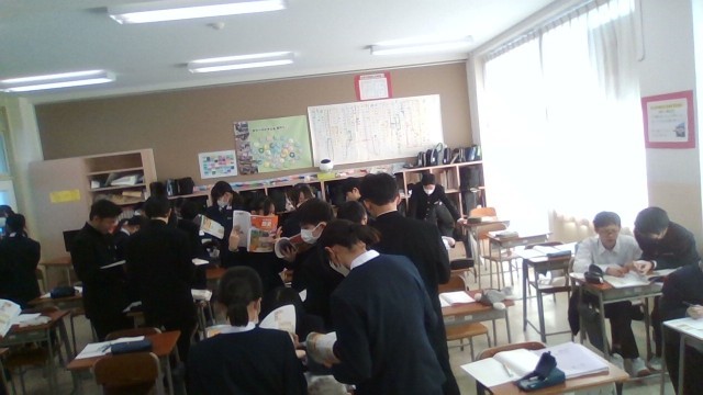 1月22日(水) 4限 1年6組 社会科の授業 公開日 2025/01/22 更新日 2025/01/22 1学年 1年6組の社会科は歴史の授業を行いました。教科書を見ながら室町時代にはどのような産業が発達したのか、話し合っています。