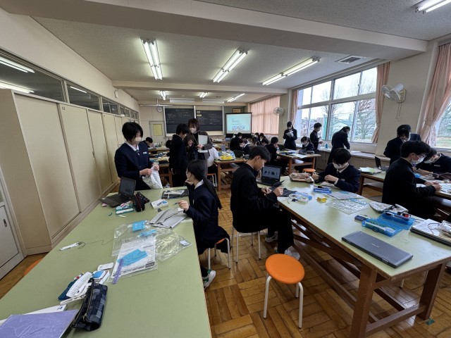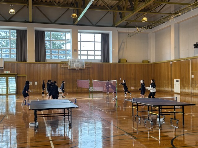 家庭科では裁縫に、体育ではバドミントンに取り組んでいました。