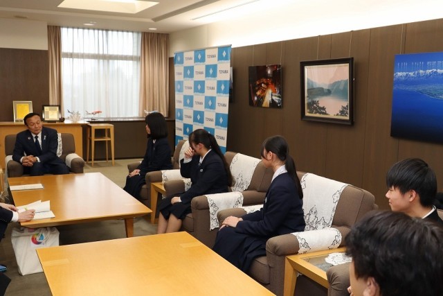 1月31日(金) 吹奏楽部 市長表敬訪問 公開日 2025/01/31 更新日 2025/01/31 部活動 マーチング全国大会金賞をとった吹奏楽部の代表が市役所で市長表敬訪問をしました。全国大会で9年ぶりに金賞を受賞したこと報告しました。藤井市長からは「部活動で培った経験は一生もの。今後もその経験を生かして頑張ってほしい」と温かい言葉をいただきました。本当に貴重な機会となりました。