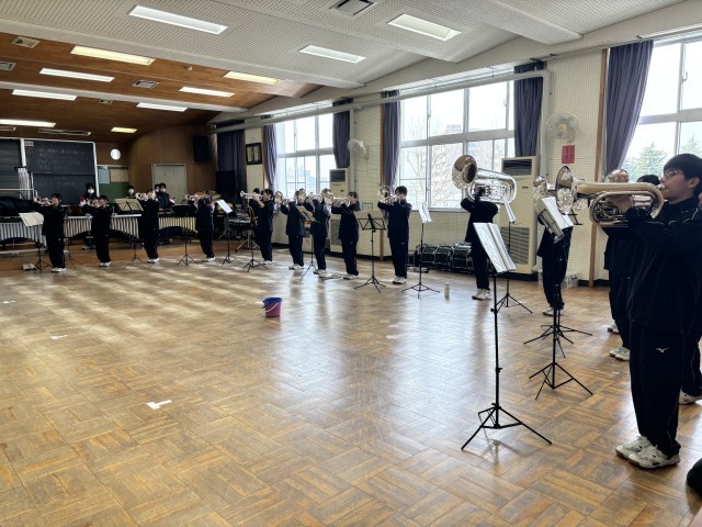 2月1日(土) 休日の部活動 吹奏楽部 公開日 2025/02/02 更新日 2025/02/02 部活動 吹奏楽部の練習風景です。地域の小学生に向けた演奏・練習会も予定しています。新チームでの初めての本番に向けて、練習に励んでいます。頑張れ吹奏楽部!