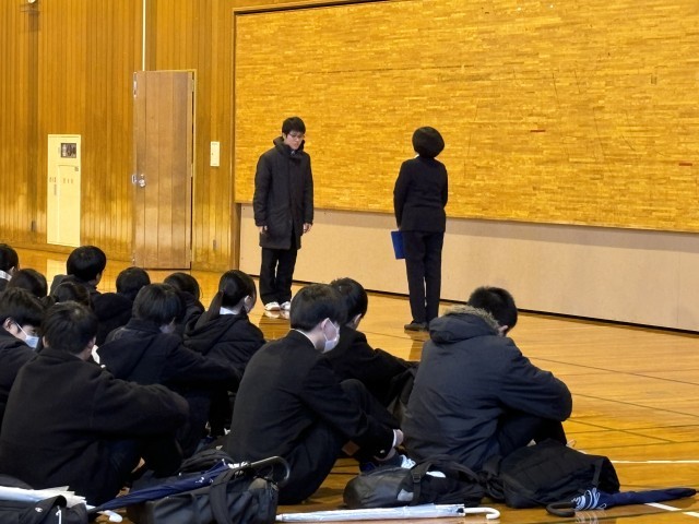 3年生 私立一般入試に向けての決起集会 公開日 2025/02/06 更新日 2025/02/06 3学年 明日の私立一般入試に向けて、学年集会を行いました。校長先生からは「これまでの自分を信じて、頑張ってきたことを発揮してきてほしい」と激励の言葉をいただきました。また、3年担任から、サプライズのエールを送りました。3年生のみなさん、大雪に負けず、無事に受検できることを願っています!頑張れ奥中生! +4