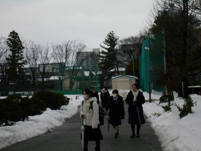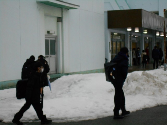 2月13日(木) 登校風景 公開日 2025/02/13 更新日 2025/02/13 学校だより くもりの日は登校時でもまだ暗く感じます。たくさん積もった雪も少しずつ融けてきました。また少し春が近づいてきます。今日は3年進路懇談会2日目となっています。積雪のため駐車場が少なくなっています。気をつけて来校ください。