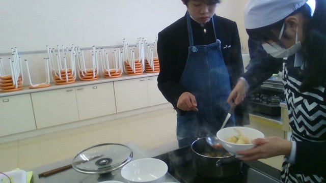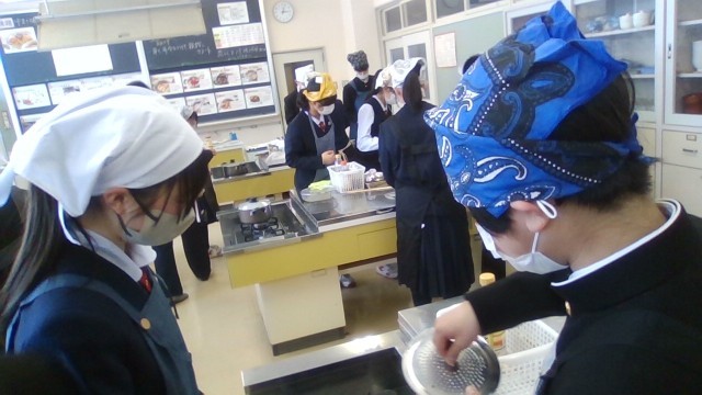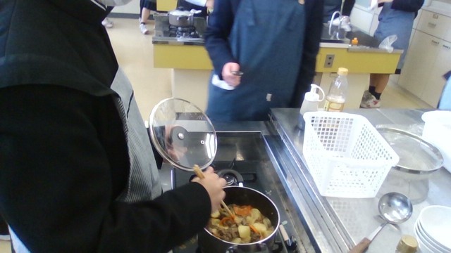 6限の1年1組は技術・家庭科 家庭分野の調理実習で「肉じゃが」を作りました。