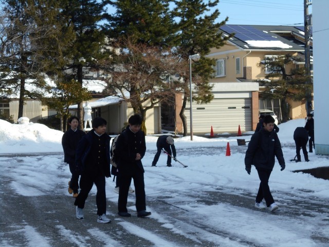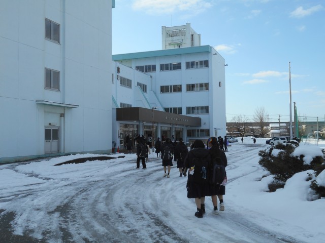 2月26日(火) 登校風景 公開日 2025/02/25 更新日 2025/02/25 学校だより 週末の雪模様から一転、晴天の朝となりました。晴れた日は凍結するので登校には注意です。今週は気温が上がりそうです。春も少しずつ近づいてきます。今日から1,2年生は学年末考査です。1年間の学習の成果を発揮してください。