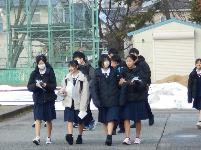 2月27日(木) 登校風景 公開日 2025/02/27 更新日 2025/02/27 学校だより 雨も上がり、晴れの日となりました。肌寒いですが昼間には気温が上がりそうです。本日まで1,2年生は学年末考査です。これまでの学習の成果を発揮しましょう。