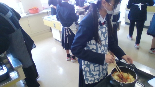 3月6日(木) 1学年 調理実習 公開日 2025/03/06 更新日 2025/03/06 1学年 3限目 1年3組では調理実習を行いました。肉じゃがをつくりました。「火加減は大丈夫?」「ちゃんと切れたかな?」みんな真剣です。