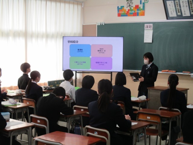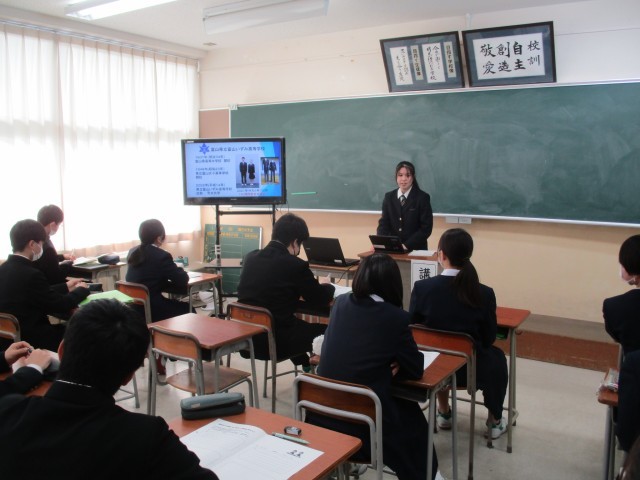 3月7日(金) 2学年 先輩に学ぶ会(その1) 公開日 2025/03/07 更新日 2025/03/07 2学年 5・6限に先輩に学ぶ会を行いました。県内の高校・高専に通う先輩方を10名招き、各学校の特徴や高校生活、学習方法等についてアドバイスをもらいました。 +3