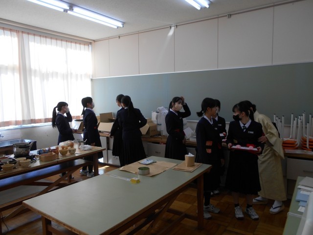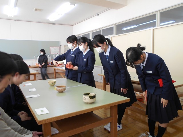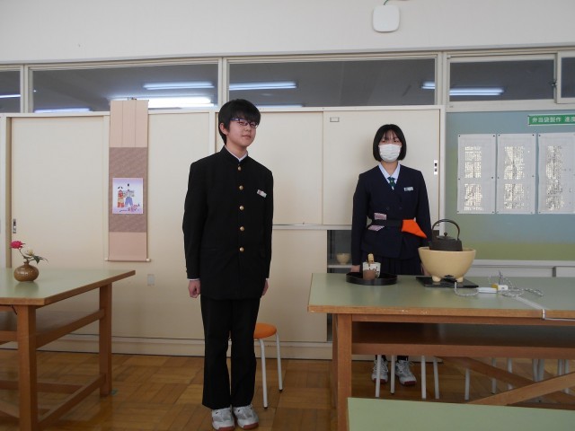 3年生へ感謝の気持ちを込めてお手前を披露しています。