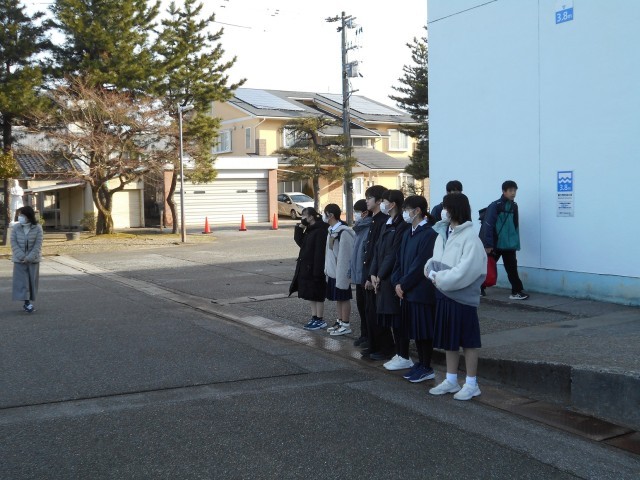 3月12日(水) 登校風景 公開日 2025/03/12 更新日 2025/03/12 学校だより 春の晴天で気持ちのよい朝です。茶道部の皆さんが挨拶運動をしました。3年生への朝の挨拶はこれが最後です。今日は明日の卒業式へ向けての予行、同窓会入会式となります。