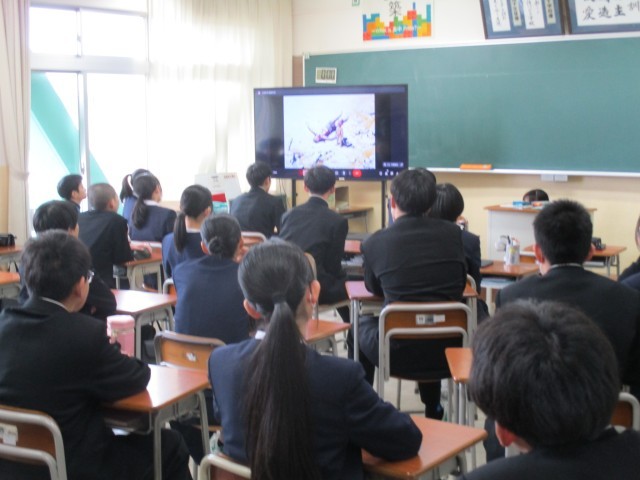 3月17日(月) 2学年 授業風景 公開日 2025/03/18 更新日 2025/03/17 2学年 2・3限は、平和学習の一環で原爆をテーマにしたアニメを鑑賞しました。原爆投下前の生活の様子や投下時、投下後の様子等、生徒たちは真剣に鑑賞しました。