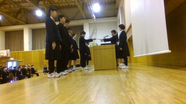 令和7年度前期生徒会執行部員への任命証が手渡されました。