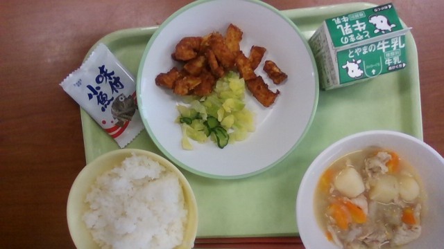 1枚目 塩肉じゃが いかのかりん揚げ きざみ和え 味付け小魚