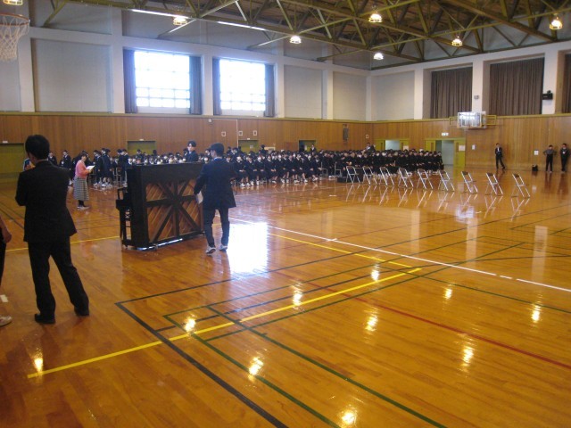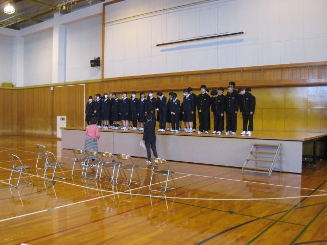 明日の入学式に向けて、2・3年生でリハーサルをしています。
