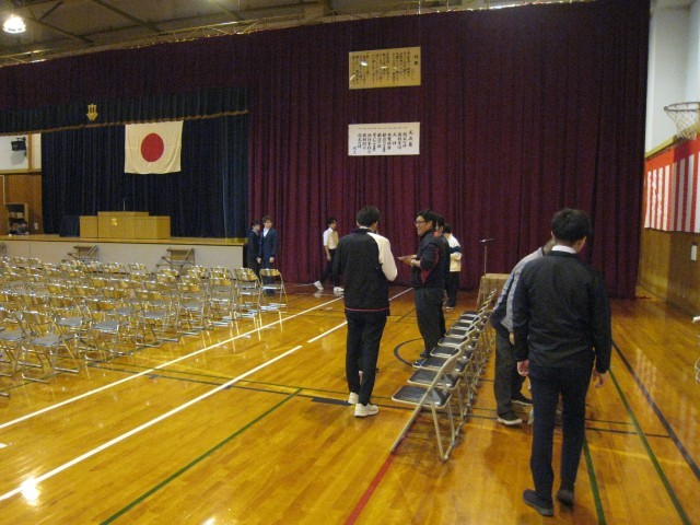 4月9日(水) 入学式に向けて 公開日 2025/04/09 更新日 2025/04/09 学校だより 3年生のおかげで式場の設営が完了しました。2年生のおかげで校舎の隅々まできれいになりました。1学年の担当者が、明日の入学式に向けて、リハーサルに取り組んでいます。新入生のみなさん、お待ちしています!