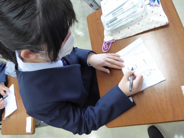 6組は、雑巾に出席番号を記入していました。
