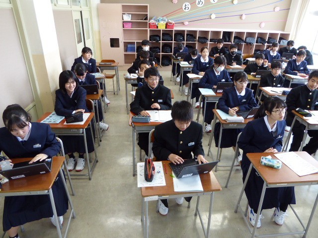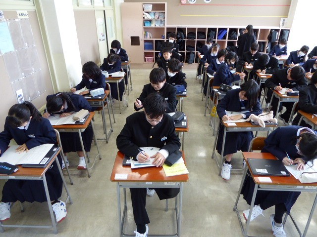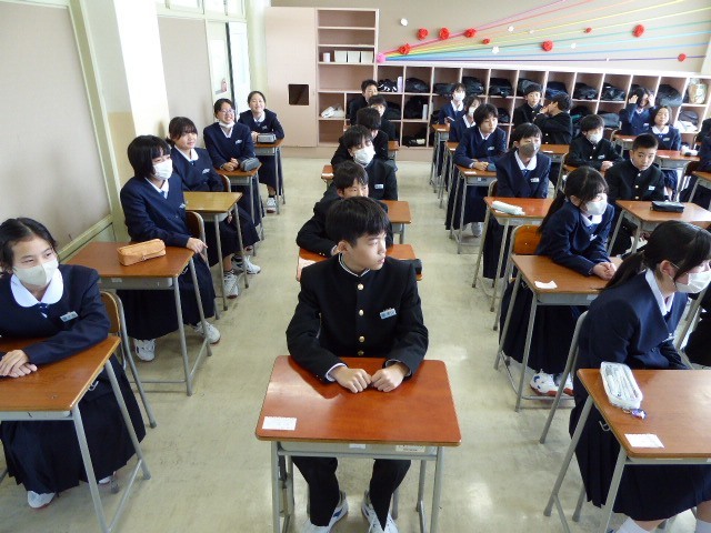 4月14日(月)1年生2限 その2 公開日 2025/04/14 更新日 2025/04/14 1学年 4組は、タブレット端末の設定をしていました。 5組は、「中学生になって」という作文を書いていました。 6組は、生活班の発表を待っていました。