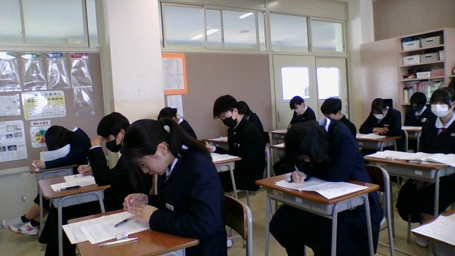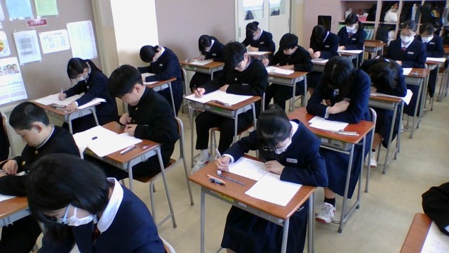みんな真剣な表情でテスト問題に取り組んでいます。